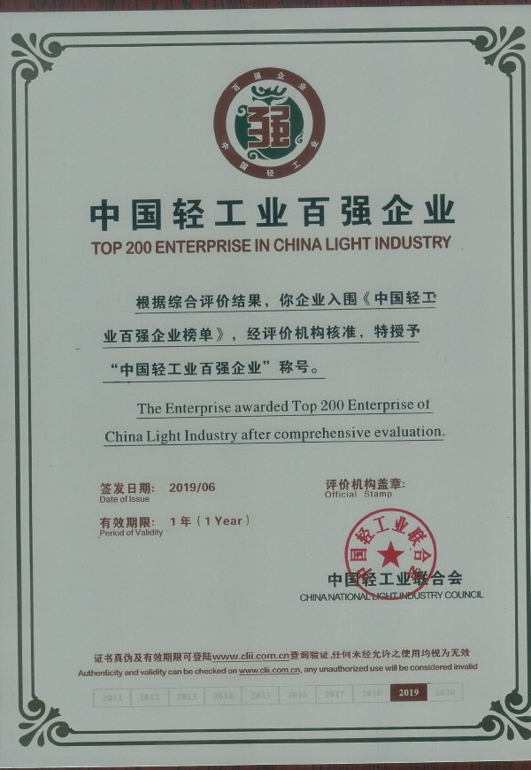 Top 100 Chinese Light Industry Technology Enterprises (ranked 28th)